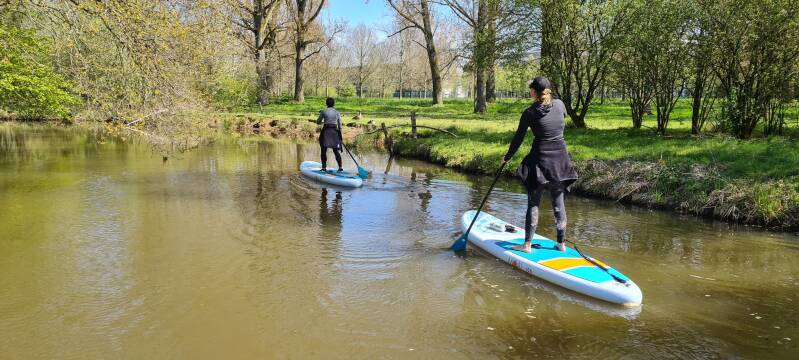 | Start met SUPPEN bij de Genneper Watermolen en vaar op- en neer naar de High Tech Campus. | We suppen heen en weer over de Dommel. Dat betekent dat het opstap-, en eindpunt hetzelfde zijn. Waardevolle spullen kun je bij ons achteraten. |